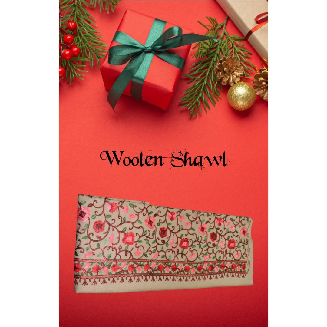Wrap yourself in the timeless elegance of this Kashmiri embroidered woolen shawl. Featuring delicate floral patterns on a soft beige background, it offers warmth and style for any occasion. Perfect for adding a touch of heritage to your wardrobe.