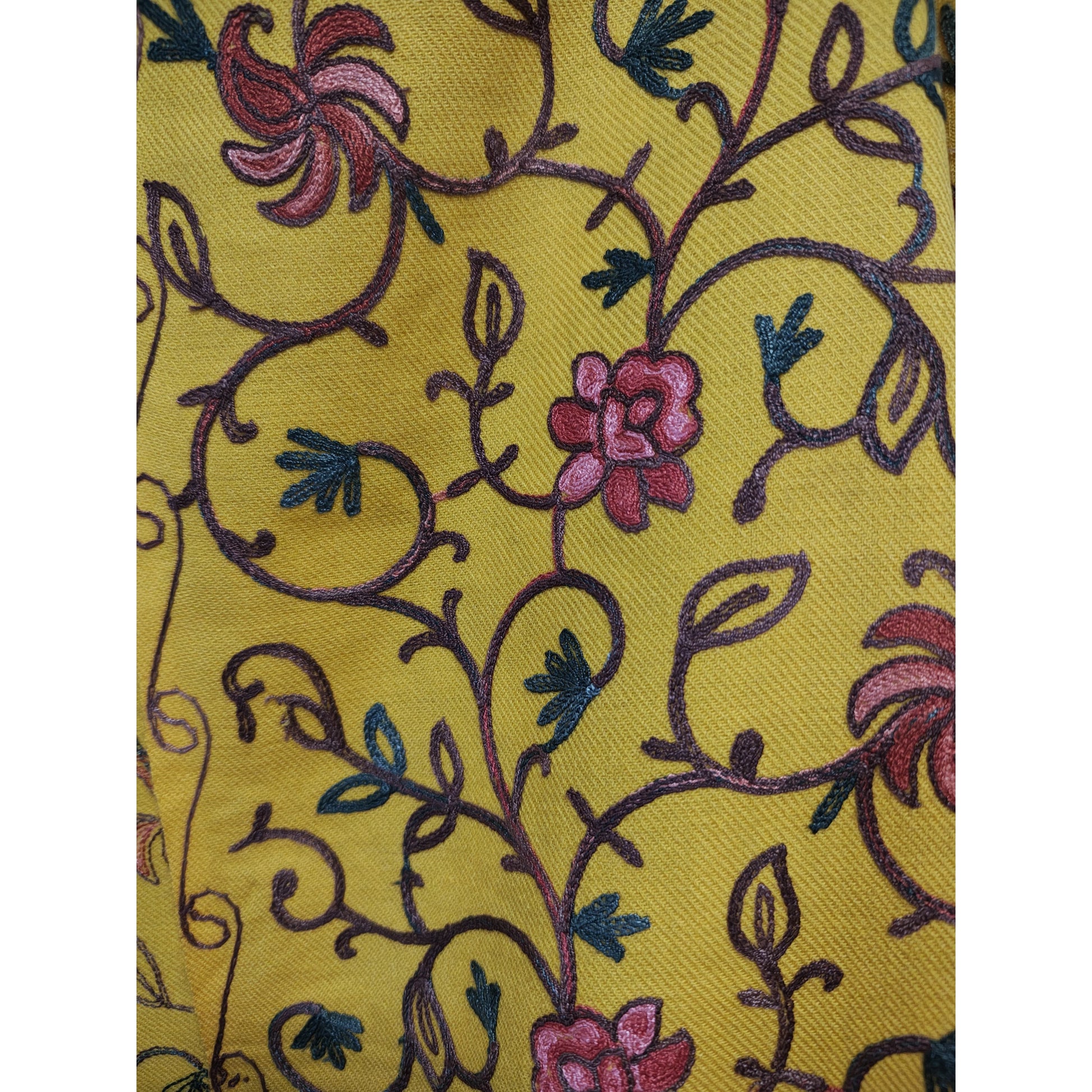 Kashmiri Embroidered Woolen Stole - Floral Amber
