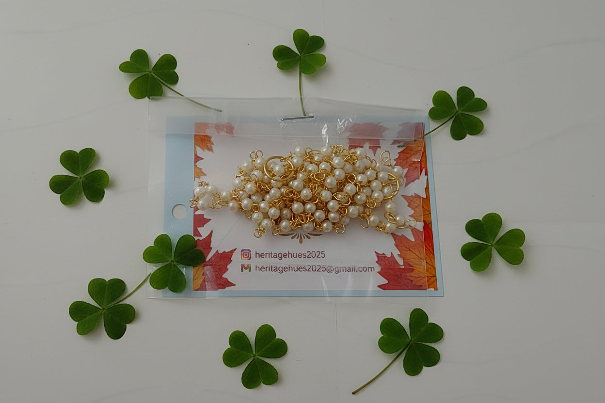 Add some Kashmiri charm to your outfit with our Pearl chain set. Perfect for a touch of elegance (or a little extra bling, wink wink)!