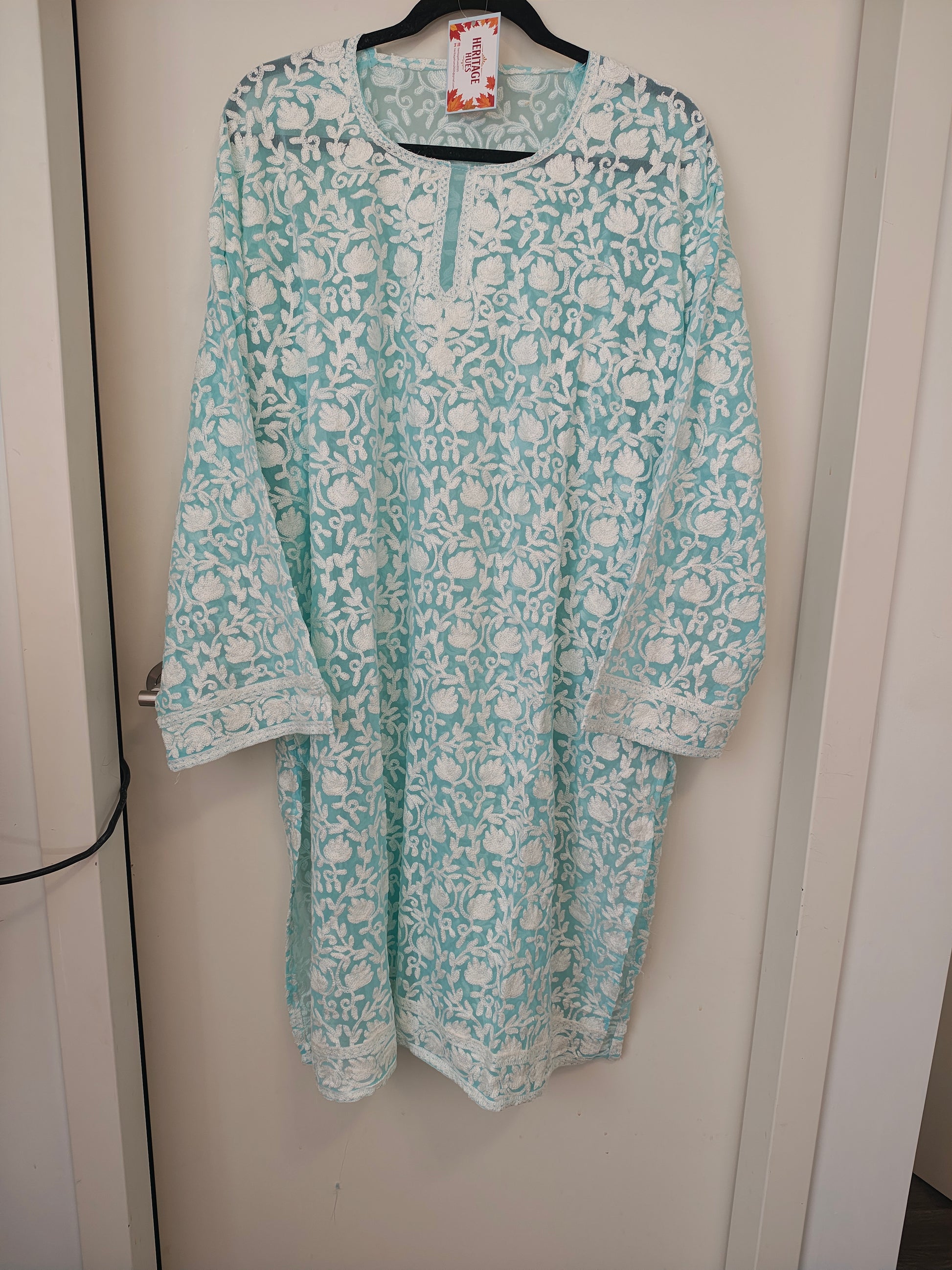 Traditional Handcrafted Georgette Long Kurti - Kashmiri Embroidered