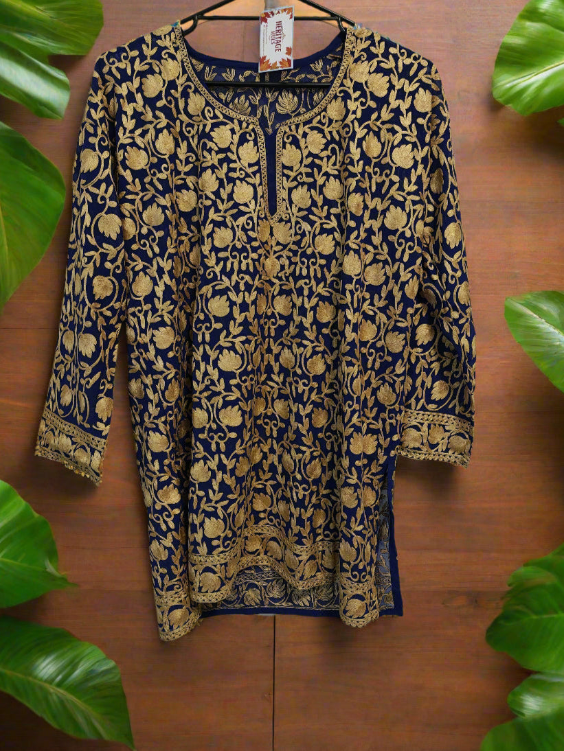 Traditional Handcrafted Georgette Short Kurti - Kashmiri Embroidered