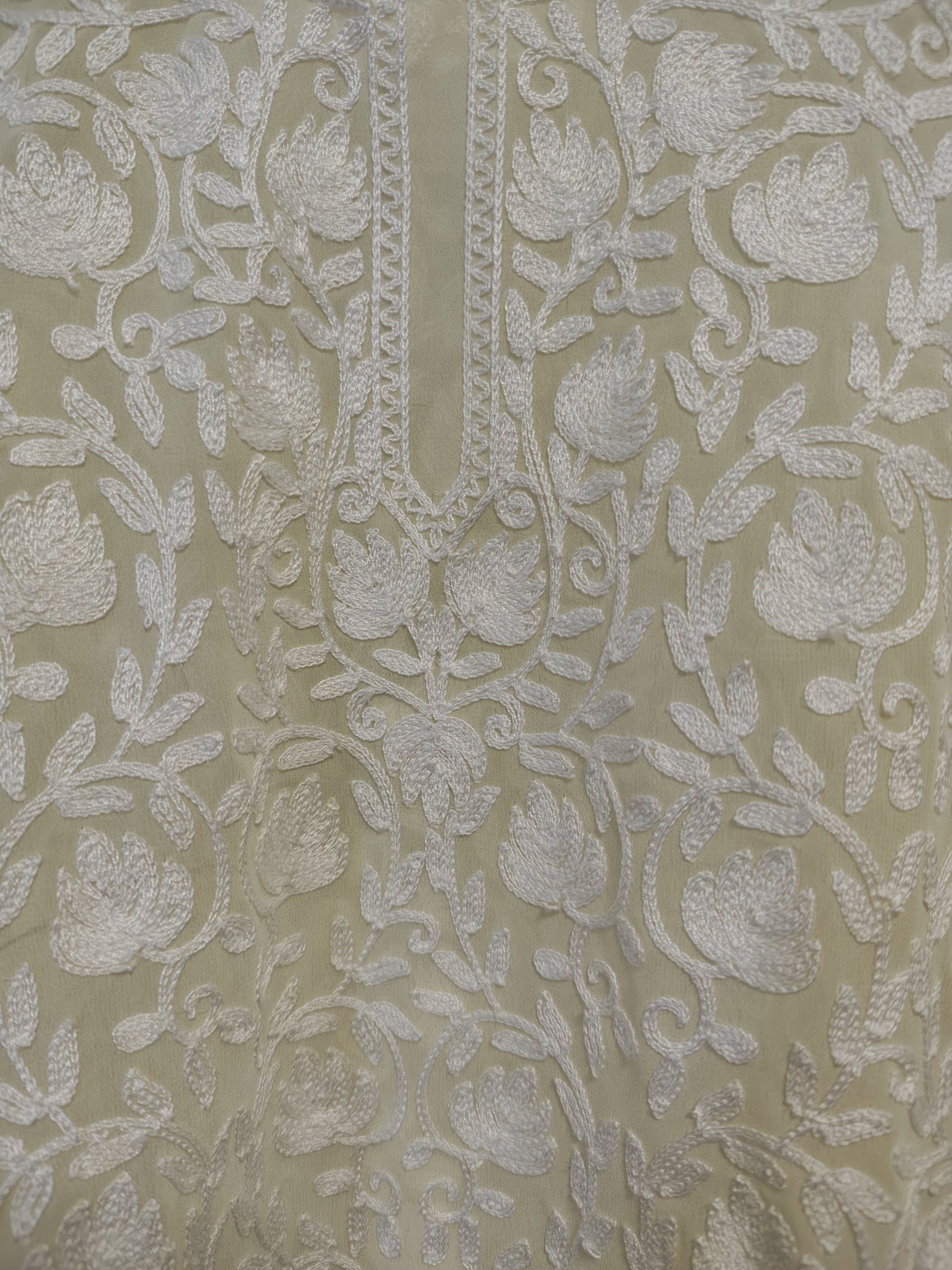 This Traditional Handcrafted Georgette Kurti is a stunning piece of art featuring beautiful Kashmiri embroidery. Made with high-quality georgette fabric, it offers a luxurious feel and intricate details. Perfect for special occasions or everyday wear, this kurti is a timeless addition to any wardrobe.